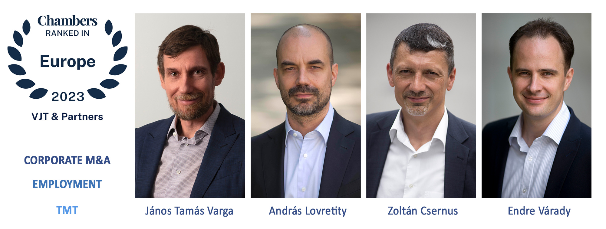 M&A területen végzett tevékenységünk szintén magas értékelést kapott, Varga János Tamást pedig egyenesen a „kommunikáció mesterének” nevezte a kiadvány. Méltó társa a munkában Lovretity András, aki szintén név szerinti ajánlást kapott a Chambers Europe oldalain.